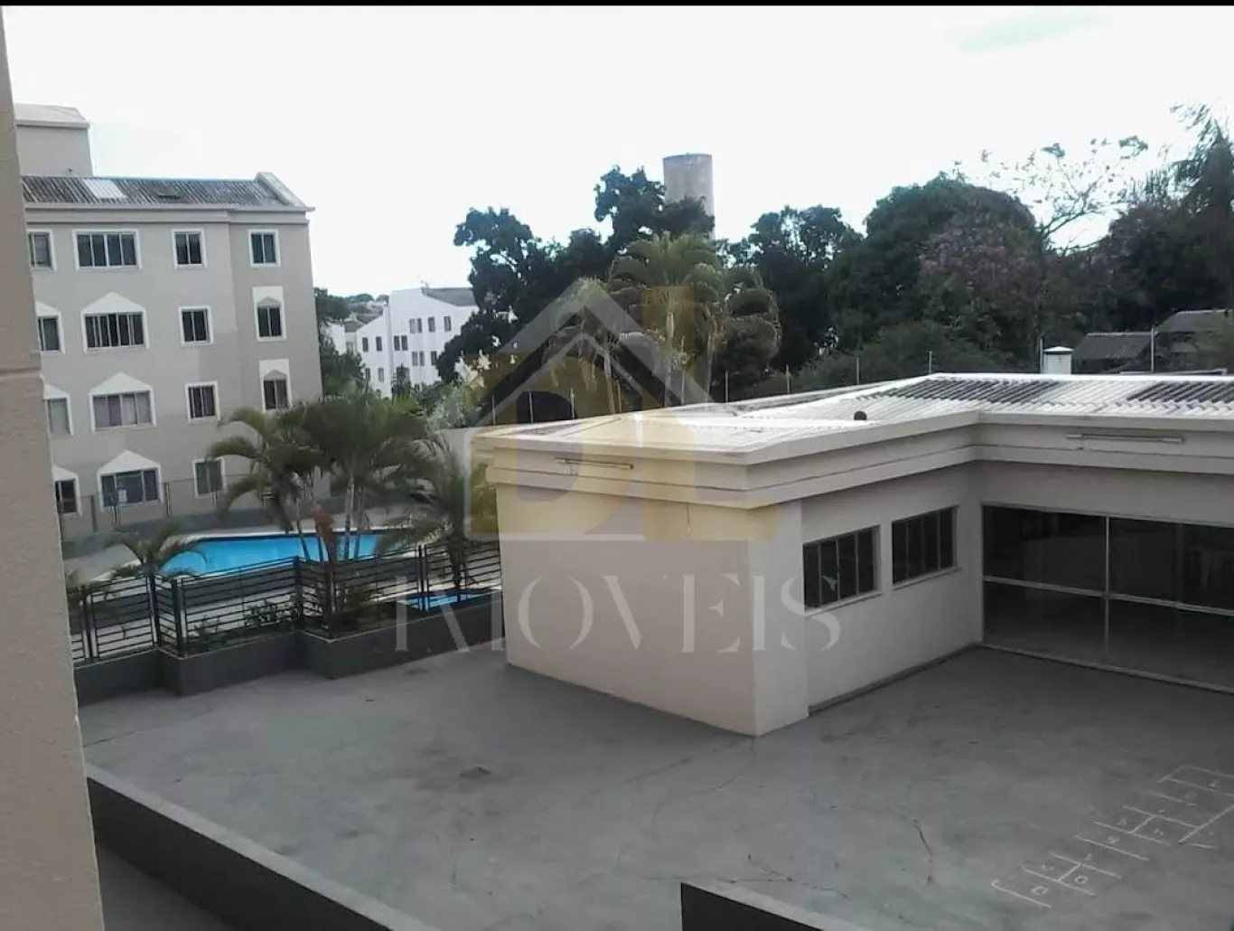 Dois quartos, cozinha, sala, um banheiro, vaga de garagem, portaria 24 hrs, não e permitido pet's, piscina adulto e infantil, salão de festas.